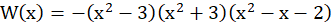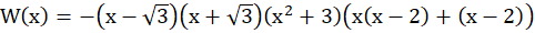 W pierwszej kolejności korzystasz ze wzoru na różnicę kwadratów i wyciągasz minus z dłuższego nawiasu. Następnie po raz kolejny korzystasz ze wzoru na różnicę kwadratów rozbijając odpowiedni nawias na czynniki, natomiast dłuższy nawias przekształcasz w sposób umożliwiający wyłączenie przed nawias wspólnego czynnika. Po wykonaniu tych operacji otrzymujesz postać iloczynową, z której odczytujesz wszystkie pierwiastki wielomianu.