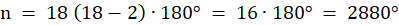 W tym zadaniu oblicz sumę miar kątów wielokąta o 15 przekątnych wychodzących z 1 punktu.