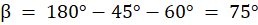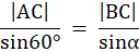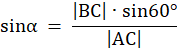 Korzystając z twierdzenia sinusów i z tego, że suma kątów wewnętrznych w trójkącie jest równa 180°, wyznaczasz miary pozostałych kątów w trójkącie. Kąt ABC jest równy 60°, kąt BAC jest oznaczony jako α, natomiast kąt ACB jako β.