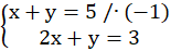 Pomnóż pierwsze równanie przez (-1), aby otrzymać przy niewiadomej y liczby przeciwne, a następnie dodaj do siebie równania.