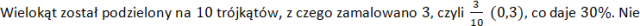 Zapisz w procentach części figur, które zostały zamalowane i które nie zostały zamalowane.