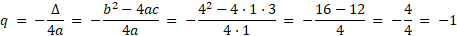 Współrzędne wierzchołka p i q obliczamy za pomocą wzorów