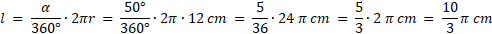 Zacznij od obliczenia długości łuku l. Następnie oblicz cały obwód. Skorzystaj ze wzoru na długość łuku