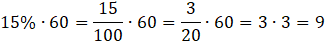 Na początku tego zadania musisz obliczyć 15% z 60. Liczba o 5% mniejsza od wyniku będzie stanowiła 95% wyniku. Musisz obliczyć 95% z pierwszego wyniku.