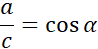 Cosinusem kąta α nazywamy stosunek długości przyprostokątnej leżącej przy kącie α do długości przeciwprostokątnej.