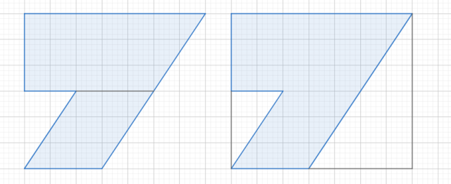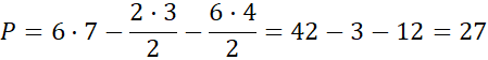 Wielokąty możesz dzielić na różne sposoby. Na ilustracji w rozwiązaniu przedstawiono podział na trapez i równoległobok oraz dorysowanie prostokąta i odjęcie dwóch trójkątów prostokątnych. Pole prostokąta to iloczyn jego długości i szerokości, powierzchnia równoległoboku jest równa iloczynowi długości jego podstawy i wysokości, która na nią pada, pole trapezu otrzymasz, mnożąc przez jedną drugą jego wysokość oraz sumę długości podstaw, a powierzchnia trójkąta prostokątnego jest równa połowie iloczynu długości jego przyprostokątnych.