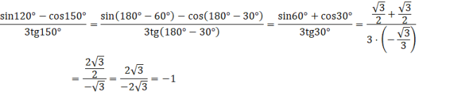 Korzystamy ze wzoru na wartości funkcji trygonometrycznych dla kątów rozwartych, aby przekształcić je na liczby wymierne.