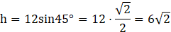 Wyznacz wysokość trójkąta równoramiennego o ramieniu długości 12 I kącie przy podstawie o mierze