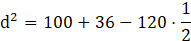 Dla dowolnego trójkąta kwadrat jednego z boków jest równy sumie kwadratów dwóch pozostałych odjąć podwojony iloczyn długości tych boków oraz cosinusa kąta między nimi.