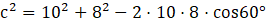 Dla dowolnego trójkąta kwadrat jednego z boków jest równy sumie kwadratów dwóch pozostałych odjąć podwojony iloczyn długości tych boków oraz cosinusa kąta między nimi.