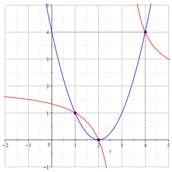 . Z treści zadania wynika rozwiązanie, które należy przeprowadzić metodą graficzną. Punkty przecięcia się funkcji (ich odcięte [x]) są rozwiązaniem tego równania. Funkcje