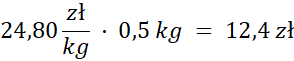 Oblicz, jakim ułamkiem kilograma jest szukana ilość sera. Pomnóż ułamek przez kwotę za kilogram.