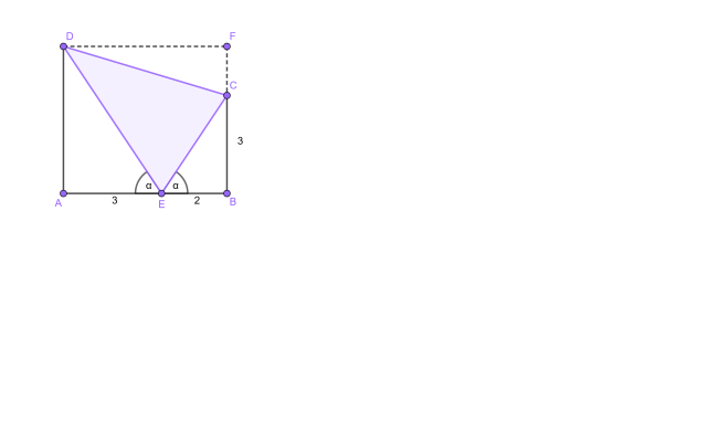 Zauważ, że trójkąty ADE oraz BCE są podobne z cechy KK. Oblicz skalę podobieństwa tych trójkątów i wykorzystaj to do obliczenia boku AD. Potem oblicz CF. Zwróć uwagę na to, że aby wyliczyć pole zacieniowanej figury musisz obliczyć pole całego prostokąta, a następnie odjąć od niego pola niezaznaczonych trójkątów.