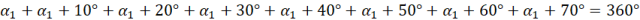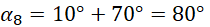 W tym zadaniu musisz obliczyć pole wycinka koła wyznaczonego przez kąt α 8, jeśli wierzchołki ośmiokąta należą do okręgu o promieniu 3 i każdy kolejny kąt środkowy, zaczynając od α 1 a kończąc na α 8, jest większy od poprzedniego o 10 ͦ.