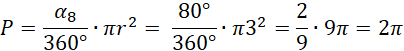 Oblicz pole wycinka koła dla kąta środkowego α8, korzystając ze wzoru: