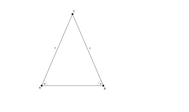 W tym zadaniu musisz wyznaczyć promień okręgu opisanego na trójkącie równoramiennym , jeśli jego ramię ma w długość b, a kąt przy podstawie ma miarę α.