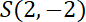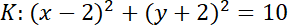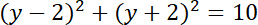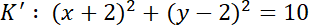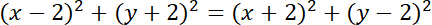 Okrąg K ma środek w punkcie S(2, -2). Okrąg K’ ma środek w punkcie S’(-2, 2) – symetrycznie względem środka układu współrzędnych. Przyrównaj do siebie równania obu okręgów i znajdź ich punkty wspólne.