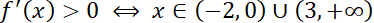 Z wykresu pochodnej funkcji, określ przedziały, w których jest ona dodatnia oraz ujemna, a następnie określ przedziały monotoniczności funkcji f, wiedząc, że gdy znak pochodnej jest dodatni, to funkcja rośnie, a gdy jest ujemny, to funkcja jest malejąca.