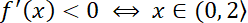 Najpierw wyznacz dziedzinę funkcji f oraz określ jej pochodną f’, a także dziedzinę tej pochodnej. Następnie wyznacz miejsca zerowe funkcji pochodnej. Zauważ, że skoro współczynnik a wielomianu jest dodatni, zacznij rysować wykres z prawej strony nad osią OX. Na tej podstawie określ znak pochodnej. Skorzystaj z faktu, że gdy pochodna jest ujemna, to funkcja jest malejąca, a gdy pochodna ma znak dodatni, to funkcja rośnie.