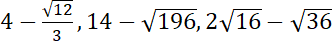 Spośród podanych liczb wskaż niewymierną, czyli tą, której wartość pierwiastka jest liczbą niewymierną oraz oblicz wyniki pozostałych.