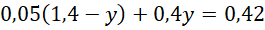 . Następnie własności podane w treści zadania zapisz za pomocą równań. Podane procenty zamień na ułamki dziesiętne. Zauważ, że powstanie układ dwóch równań z dwoma niewiadomymi. Z pierwszego równania w układzie równań wyznacz wartość