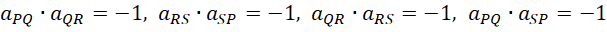 Dodatkowo proste PQ i QR, RS i SP, QR i RS oraz PQ i SP powinny być prostopadłe, więc ich współczynniki kierunkowe muszą być przeciwne i odwrotne, czyli spełniać warunek: