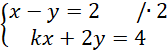 Pomnóż pierwsze równanie przez 2, aby współczynniki znajdujące się przy y były przeciwne. Następnie porównaj współczynniki znajdujące się przy x.
