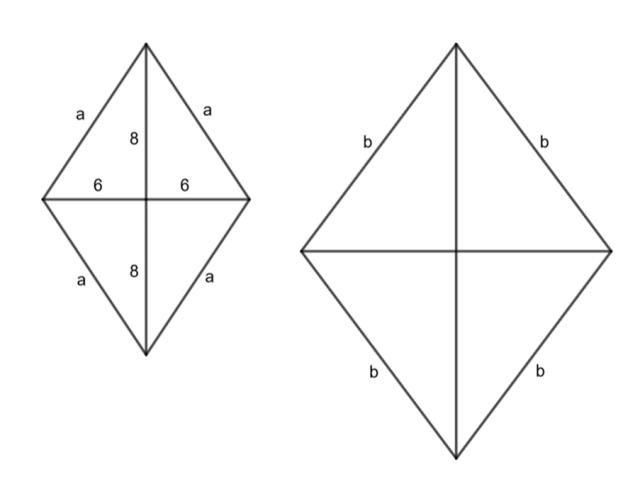 Skorzystaj z tego, że podane romby są podobne i znasz skalę ich podobieństwa.