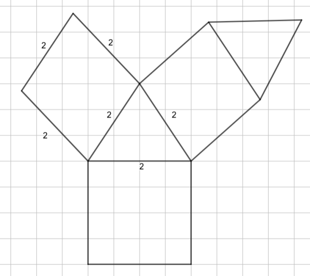 Skorzystaj z tego, że siatka graniastosłupa to figura, która składa się ze wszystkich jego ścian położonych w taki sposób, że można z nich go złożyć. Na tej podstawie narysuj siatkę graniastosłupa, którego podstawą jest trójkąt równoboczny o boku 2, a ściany są kwadratami.