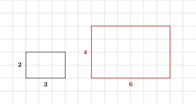 Aby skala podobieństwa drugiego czworokąta do pierwszego wynosiła 2, to jego wymiary muszą być dwa razy większe od wymiarów wyjściowej figury.
