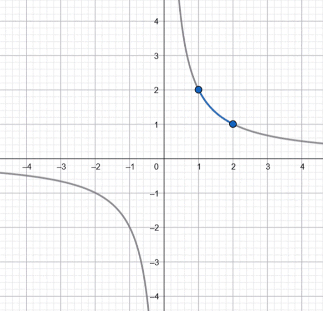 Zauważ, że w mianowniku ułamka nie może być 0 i na tej podstawie oblicz dziedzinę podanej funkcji, a następnie naszkicuj jej wykres oraz odczytaj wartość najmniejszą i największą w podanym przedziale.