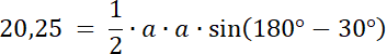 Skorzystaj z twierdzenia na pole trójkąta, które uwzględnia sinus kąta w trójkącie, aby wyznaczyć długość ramion trójkąta, a następnie z twierdzenia cosinusów wyznacz długość boku, leżącego naprzeciwko kąta α.