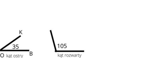 Narysuj kąt BOK o mierze 35 stopni oraz kąt trzy razy większy od kąta BOK. Zapisz, jaki to rodzaj kąta.