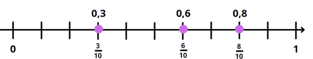 W tym zadaniu musisz podać wartość każdego z kolorowych punktów, używając ułamków zwykłych i dziesiętnych.