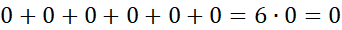 Musisz podaną sumę 0 +0 + 0 + 0 + 0 + 0 zapiać w postaci iloczynu i obliczyć.