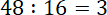 Zauważ, mianowniki ułamków są takie same, więc należy znaleźć dzielnik, który jest liczbą naturalną. Przyjrzyj się licznikom: aby otrzymać liczbę 3, liczbę 48 należy podzielić przez 16.