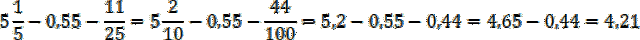 Przed wykonaniem dodawania i odejmowania zapisz liczby mieszane i ułamki jako liczby dziesiętne. Mnożąc i dzieląc, zapisz liczby dziesiętne jako ułamki niewłaściwe, dzielenie zastąp mnożeniem przez odwrotność dzielnika, skracaj czynniki, gdy to możliwe. Wyniki przedstaw w najprostszej postaci.