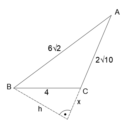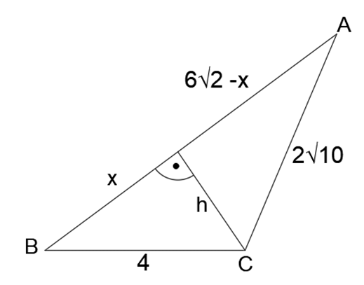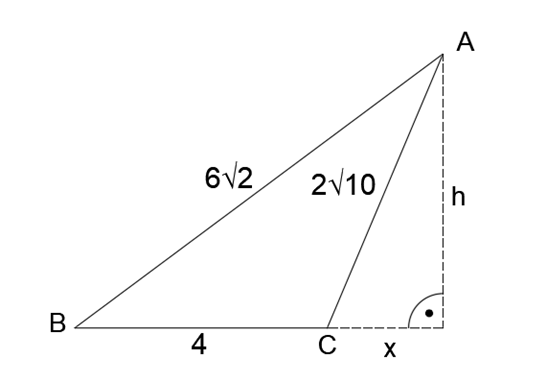 (6√2 – x)2 + h2 = (2√10)2 (2)