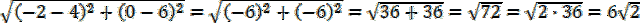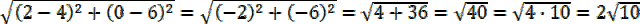 ObwABC = |AB| + |BC| + |AC| = 6√2 + 4 + 2√10