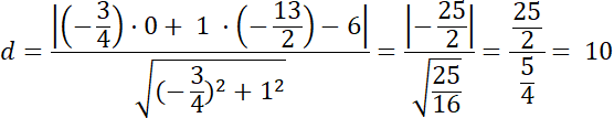 Skorzystaj ze wzoru na odległość punktu C(x0, y0) od prostej o równaniu ogólnym: Ax + By + C = 0, który wyraża się za pomocą wzoru: