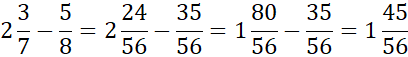 Rozszerz licznik i mianownik w obu ułamkach przez tę samą liczbę, tak, aby uzyskać ten sam mianownik. Kiedy odejmujesz od siebie ułamki, to mianownik pozostaje bez zmian. Odejmujesz tylko liczniki od siebie i części całkowite od siebie (jeśli są). Jeżeli wynik to ułamek niewłaściwy, to musisz koniecznie wyłączyć całości tak, aby ostateczny wynik składał się z liczby naturalnej i ułamka właściwego.