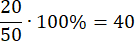 Podziel 20 przez 50, a otrzymany ułamek zamień na procenty: