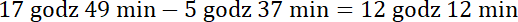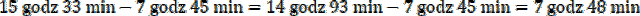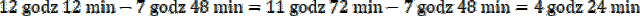 Aby obliczyć różnicę trwania dni, skorzystaj z danych wyliczonych w poprzednim podpunkcie i wykonaj ich odejmowanie. Pamiętaj, gdy liczba minut w odjemnej jest mniejsza niż w odjemniku, zamień 1 godzinę na 60 minut.