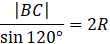 Aby obliczyć promień okręgu opisanego na trójkącie skorzystaj z wyznaczonej w poprzednim podpunkcie długości boku BC. Długość promienia oblicz z równania otrzymanego na podstawie twierdzenia sinusów