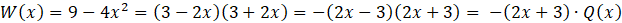 Aby znaleźć wielomian P(x) przedstaw wielomian W(x) w postaci iloczynu wielomianów Q(x) oraz drugiego wielomianu. W tym celu posłuż się wzorem skróconego mnożenia różnicę kwadratów. Wyznaczony wielomian jest wielomianem P(x).