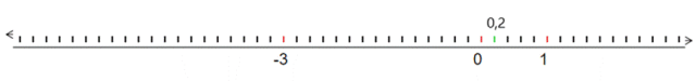 Pamiętaj, iloraz dwóch liczb tego samego znaku jest liczbą dodatnią. Następnie przyjrzyj się osi liczbowej: liczby 0 i 1 dzieli 5 kresek, więc każda z nich oznacza jedną piątą, czyli 0,2. Odszukaj na prawo od zera i zaznacz liczbę 0,2.