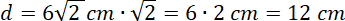 W tym zadaniu musisz obliczyć długość przeciwprostokątnej w trójkącie prostokątnym równoramiennym, znając długość ramienia: .
