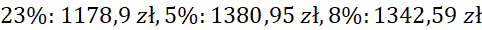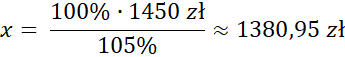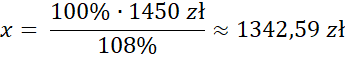 W tym zadaniu oblicz ceny netto od ceny netto, gdy cena brutto wynosi 1450 zł i została naliczona według trzech różnych stawek.