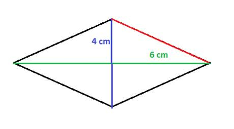 Znajdź na rysunku trójkąt prostokątny i skorzystaj z twierdzenia Pitagorasa. Twierdzenie Pitagorasa mówi o tym, że suma kwadratów przyprostokątnych jest równa kwadratowi przeciwprostokątnej. Skorzystaj z tego, że przekątne rombu przecinają się dokładnie w połowie.
