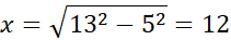 Zauważ, że odległość środka podstawy do jej wierzchołka jest równa długości jej boku. Korzystając z twierdzenia Pitagorasa, oblicz długość x będącą przyprostokątną trójkąta prostokątnego o drugiej przyprostokątnej równej długości boku podstawy i przeciwprostokątnej równej długości krawędzi bocznej.
